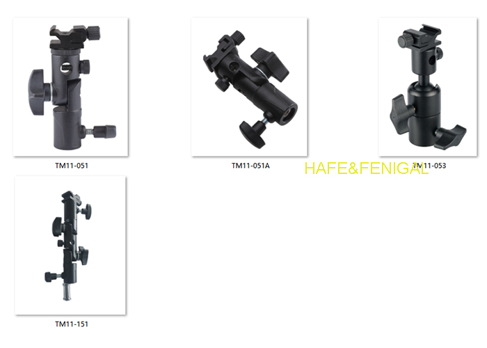 - Especificaciones: Los modelos TM11-054 a TM11-084 abarcan herramientas especializadas (zapatillas calientes de un solo accesorio, barras transversales de varios dispositivos, soportes de cardán,y adaptadores de interfaz) para soportar diversos equipos externos (flashes), monitores, micrófonos, etc.).